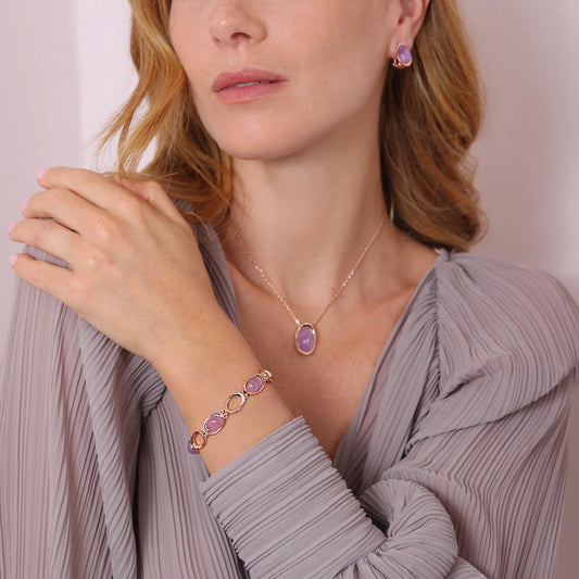 Bracciale a Maglie con Pietra Naturale Ovale Sfaccettata