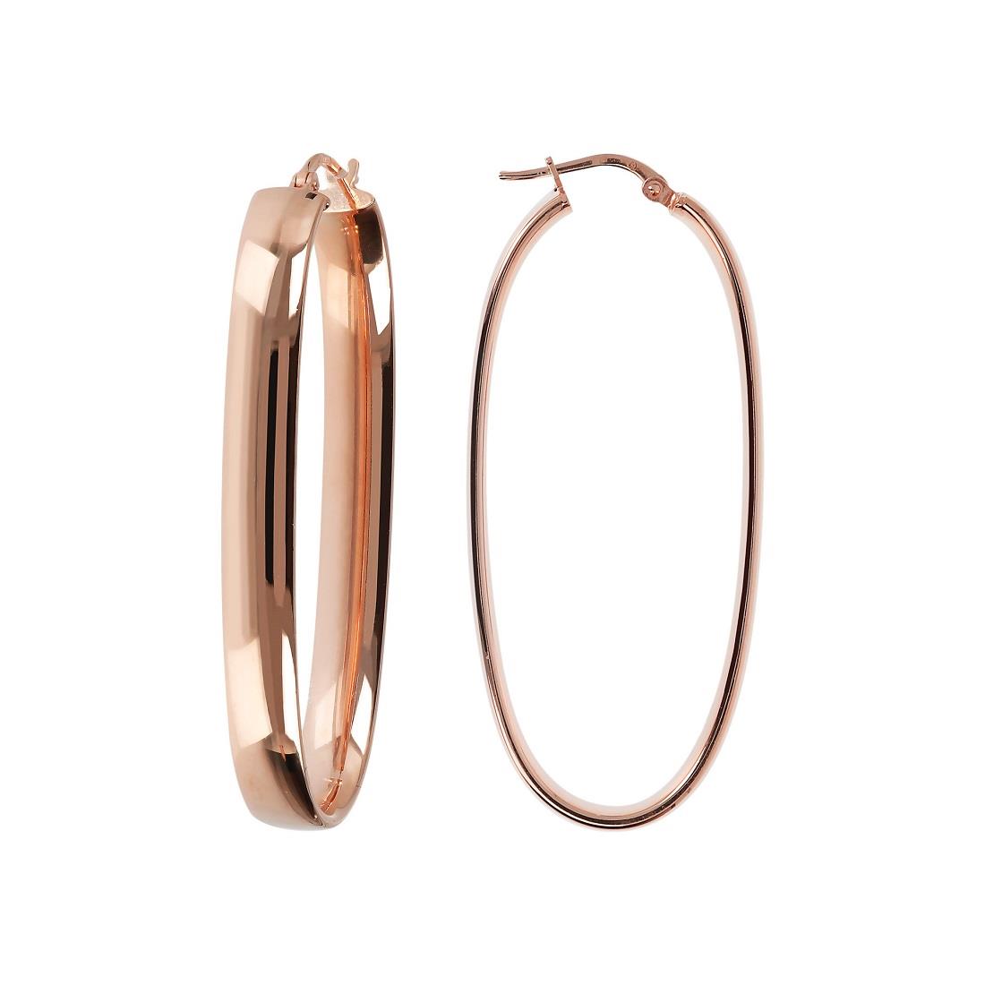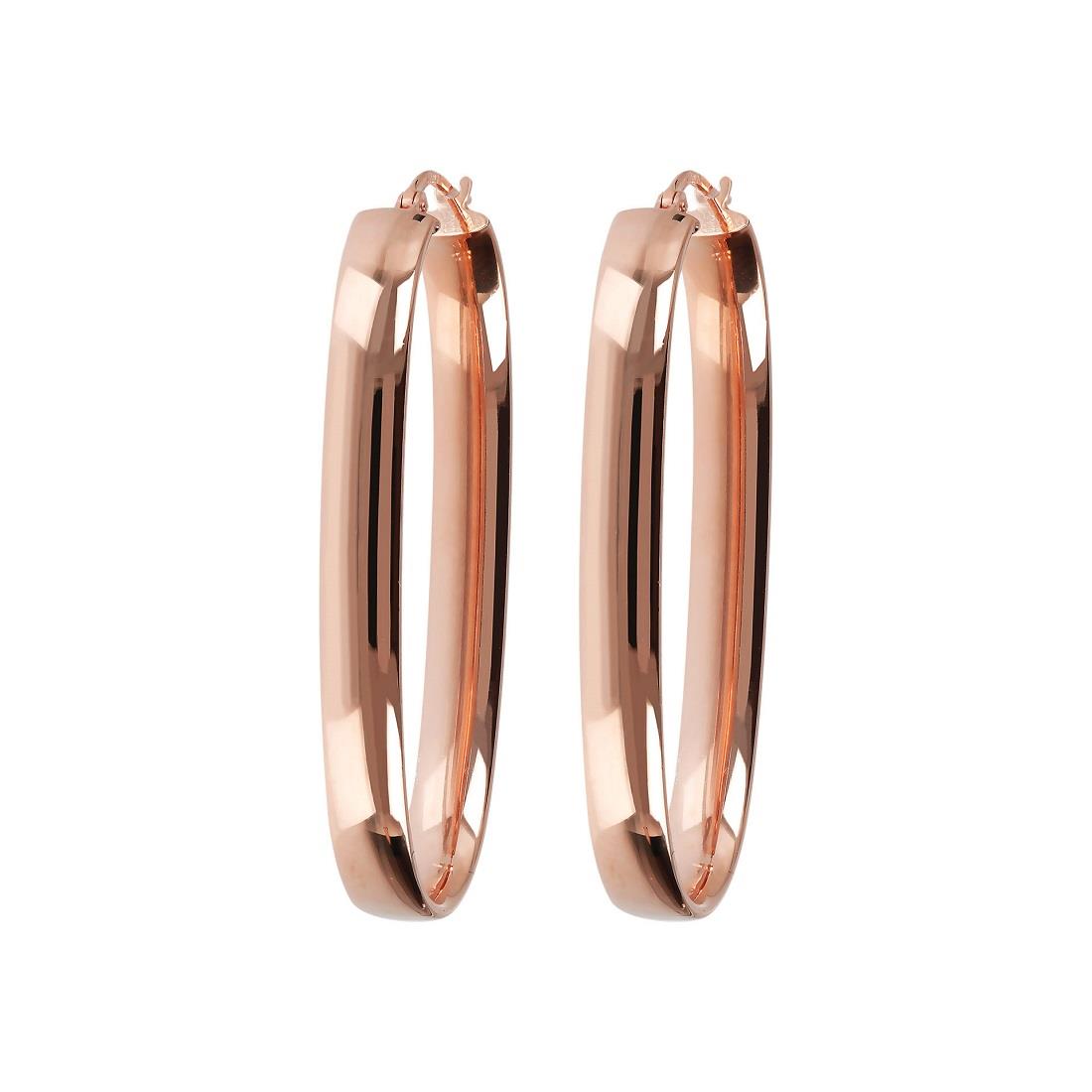 Orecchini Belrose a cerchio allungati in bronzo placcato oro rosa 18 Kt. Diametro 5 cm