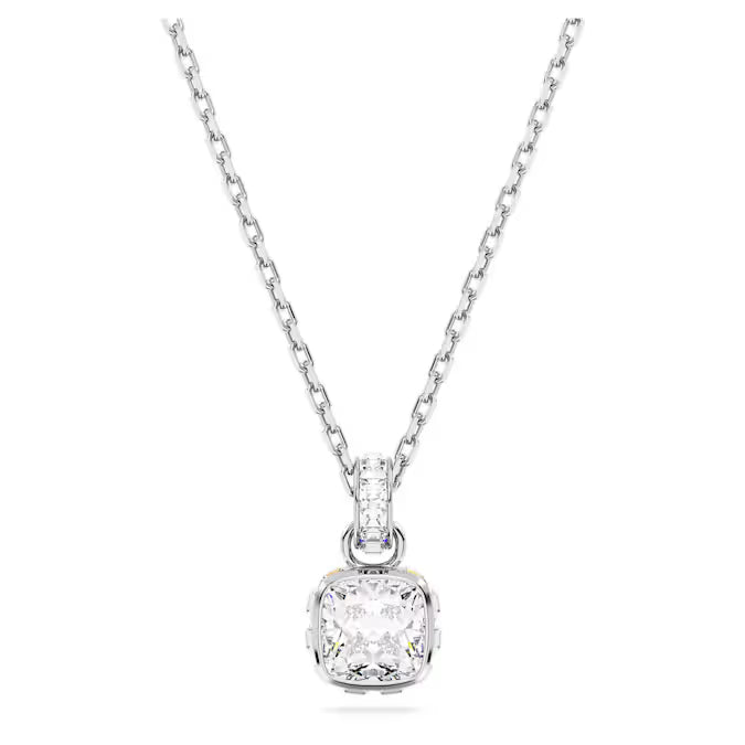 Questo delicato pendente si ispira alla pietra portafortuna del mese di aprile. Appeso a una sottile catena con maglie scintillanti di cristalli, questo gioiello placcato rodio è caratterizzato da un’unica pietra dal taglio Square in una tonalità trasparente che rappresenta il vigore, la chiarezza e la forza interiore. Questo design pieno di significato sarà un magico regalo di compleanno o potrà essere ndossato per festeggiare una data per te importante.